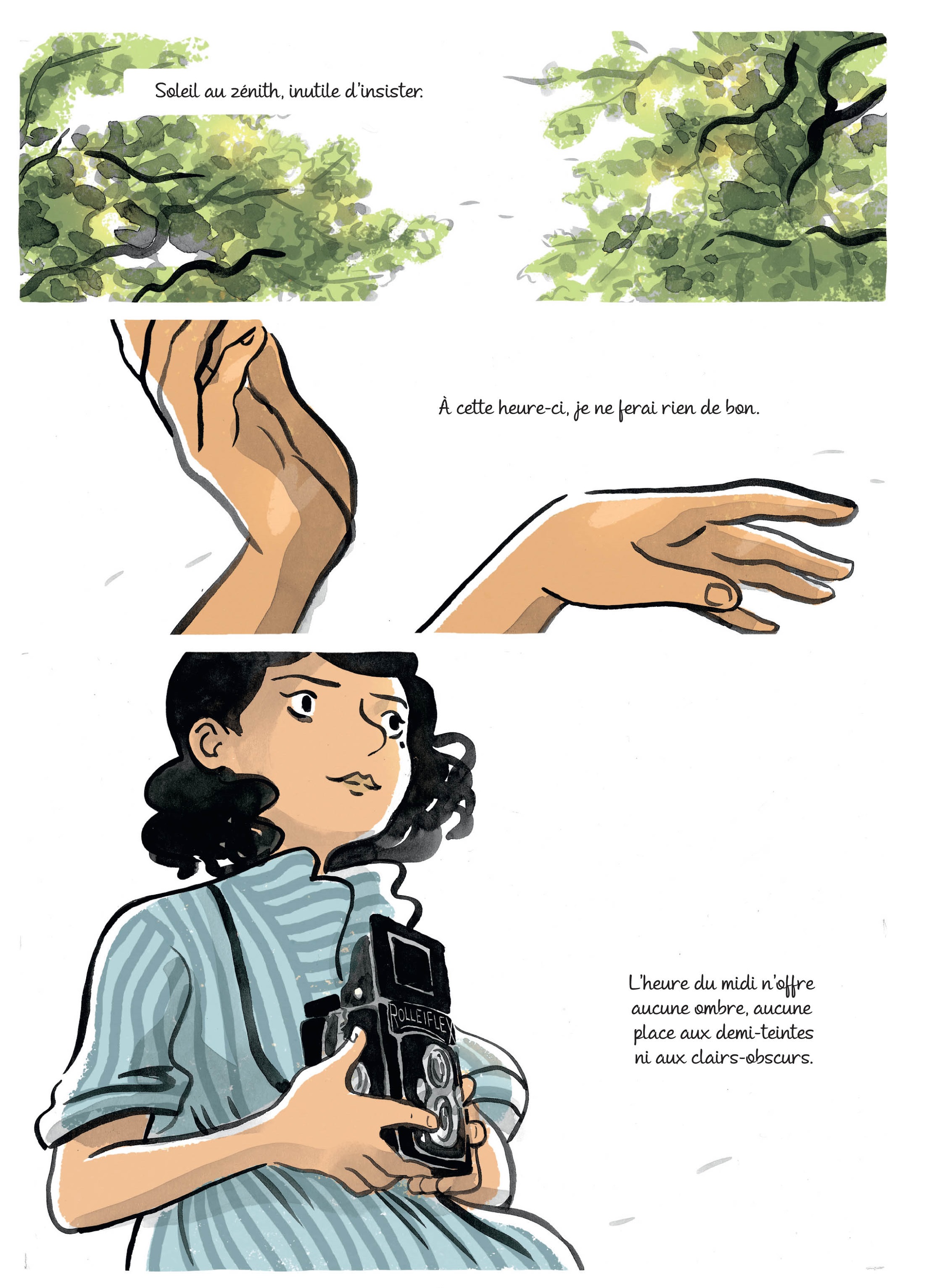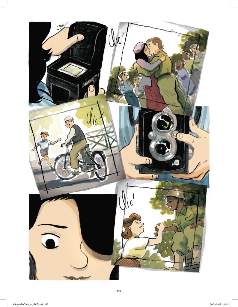 De plus, les moments autour de l’appareil photo sont très intéressants. Nous voyons ce qu’elle voit du monde. Les photographies se révèlent doucement au regard du lecteur. Des moments qui montrent l’histoire autrement. Ces images sont d’autant plus touchantes quand à la fin de la bande dessinée on voit des vraies photographies prises par la mère de Julia Billet.