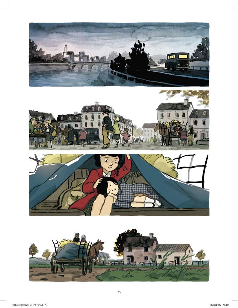 Le rendu graphique est assez sublime. Un trait léger, des couleurs douces, tout est plein de douceur. La petite fille est mignonne et très attachante tout comme ceux qui vont l’aider et la protéger. On rencontre des enfants pleins de générosité, des gens qui accueillent sans retour ces enfants et ces résistants prêts à tout pour la liberté. Les pages se tournent avec plaisir malgré l’horreur de la Seconde guerre mondiale.