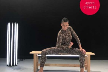 Raphaëlle Delaunay arrive en fond de salle, jogging haut panthère, en proposant des exercices de respiration. Doucement, à pas de chat, la voie douce au micro, elle propose des exercices pour se détendre. Arrivé, sur scène les exercices nécessitent alors plus d’espace, puisqu’il se faut coucher. Les bruits de chaises se font entendre, car au fond de salle on ne voit rien. Ce qui n’est pas important puisqu’elle décrit les exercices qu’elle fait. Je devine alors que le spectacle alors commence et qu’elle incarne une professeure de fitness. La souplesse du corps de la danseuse est visible très vite.