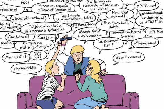 Les accros aux séries ne manquent pas que l’on soit majeur ou mineur. Aux Etats-Unis, les chaînes câblées rivalisent en série pour appâter l’abonné. En 2006, tout cela commence à changer avec l’arrivée de Netflix sur le marché. Pour 10$ par mois, les gens peuvent voir des séries et des films en illimité. Les chaînes privées doivent produire des séries de qualité comme Walking dead s’ils veulent conserver leur public. Netflix crée aussi ces produits comme House of Cards. Un milieu difficile et très concurrentiel qui permet aux spectateurs de voir des choses de meilleure qualité.