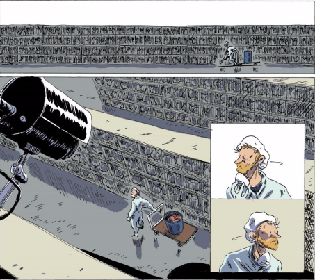 Extrait et présentation d’une bande dessinée de Gabi Beltran et Bartolomé Ségui qui se nomme Histoires du quartier. Elle parle d’une période très noire pour l’Espagne avec la mort de Franco. Les pages sont noires afin de mieux valoriser les planches. De plus, ce ce n’est pas un reportage.