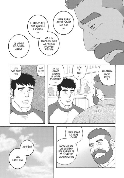 Les personnages sont toujours aussi attachants. Dans ce tome on découvre la mère de Kana. Gengoroh Tagame avait laissé planer un doute sur la mère de Kana. Serait-elle morte ? Non, les parents sont justes divorcés. Quand la mère a un peu de temps, elle passe à la maison voir sa fille. Une femme joyeuse, souriante et aimante. Le courant est passé tout de suite avec Mike. J’ai envie d’en savoir plus sur cette famille et l’évolution des relations des uns avec les autres et le rapport aux extérieurs de la famille.