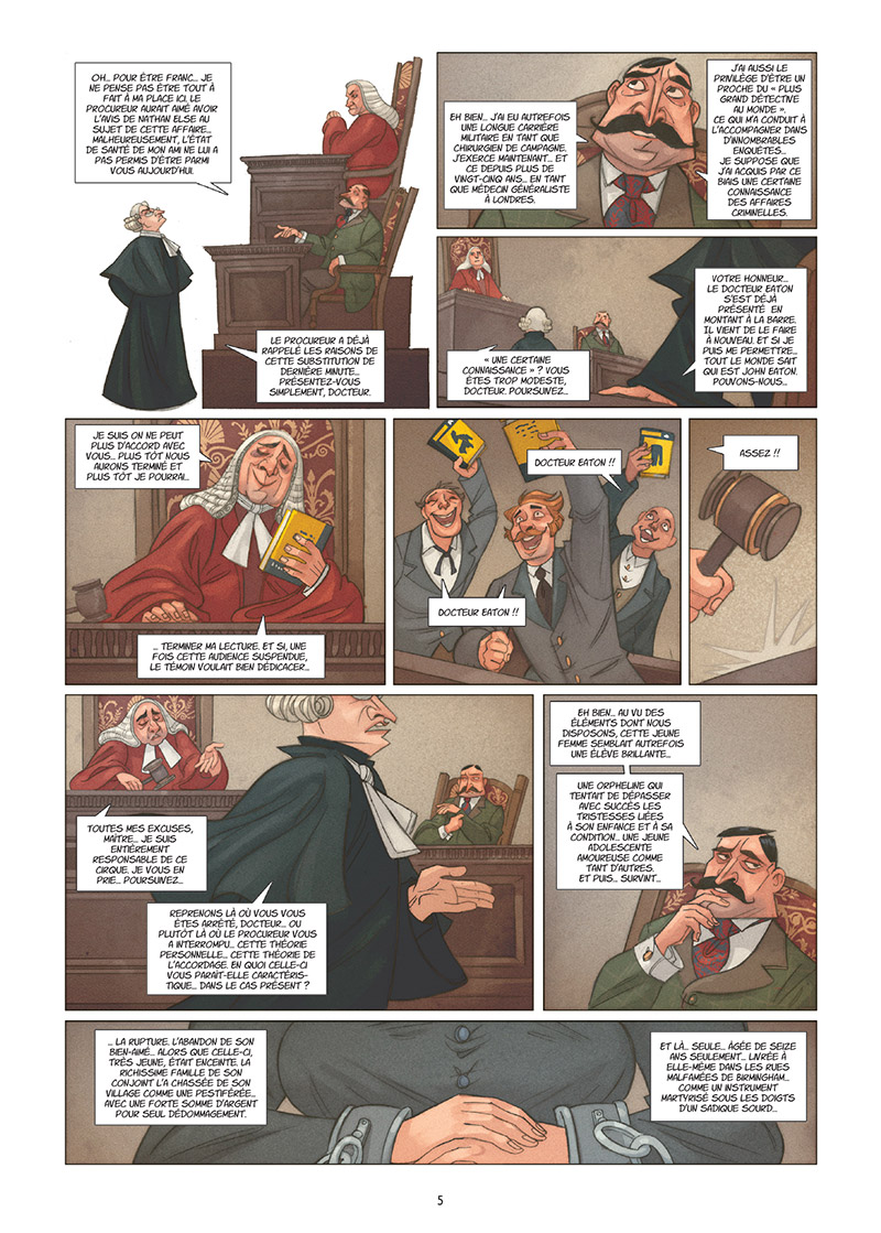 John Eaton est le sixième détective de la série tiré du tome les « 7 détectives », publié en 2012 chez Delcourt. Hérik Hanna aime encore y jouer avec des clins d’œil culturels et littéraires. C’est assez originale de faire le parallèle entre Sherlock/John Watson et Nathan Else/John Eaton mais en mettant John Eaton dans la peau d’un personnage double. Nathan Else recherche au final son meilleur ami qui aura toujours un coup d’avance. On peut voir des références à des enquêtes de Conan Doyle, à From Hell et à l’histoire de psychiatrie. Le pourquoi du comment les criminelles en sont arrivés là devient une question que l’on se pose. On se demande aussi si la trépanation ou séance d’électrochoc peuvent aider les patients à se comporter mieux.