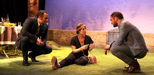 Didier Caron a décidé de réunir pour son nouveau spectacle des comédiens qui ont l’habitude de la scène et de la comédie grand public. On y rencontre l’auteur et metteur en scène, Véronique Viel, Sandrine Le Beurre, Karina Marimon, Julia Dorval, Romain Fleury, Arnaud Pfeiffer, Michel Fedder et Christiane Ludot. Aidé de ces comédiens il aborde le divorce, la séparation, les aventures d’un soir, la famille, la famille recomposée, les beaux-parents, l’homosexualité, l’alcoolisme, la superficialité, la seconde guerre mondiale (point godwin ? ), l’amitié, la maladie… Un paquet de sujet qui se mélange assez bien. Même si les clichés sont quand même légion et que rien n’arrive de très surprenant car les ficelles utilisés sont toujours pareils, on passe un bon moment. Les comédiens savent faire vivre leur texte malgré un décor qui fait assez carton-pâte.