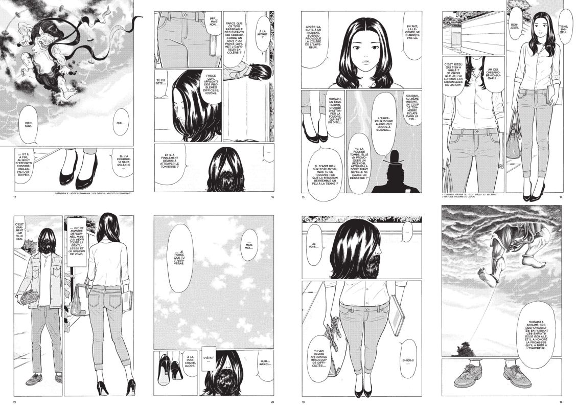 J’avais fini le tome 1 sans grand enthousiasme. Mais l’écho très positif autour de ce manga m’a poussé à me demander si je n’étais pas passée à côté de quelque chose. Alors j’ai décidé de lire le tome 2 pour me faire mon opinion. Je ne comprends toujours pas pourquoi cet enthousiasme autour de Chiisakobé. Il faudra peut-être que j’en discute avec un fan. Ce que j’apprécie c’est le découpage et les plans choisis qui change du mange plus traditionnel. Je trouve que cela se rapproche d’un regard photographique. Ce n’est pas toujours les corps avec les visages qui sont importants. Cela peut-être un geste lorsqu’on fait la cuisine, les mouvements d’une jupe dans un déplacement, des mains posées sur les genoux. J’aime aussi regarder le manga juste pour les cadrages pour apprendre à voir ce qui nous entoure différemment.