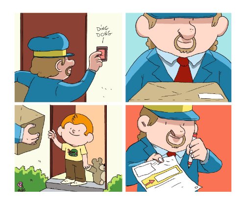 Une excellente bande dessinée jeunesse pour les premiers lecteurs. De grandes images, des couleurs vives, un dessin tout en rondeur et très peu de texte. Ainsi des adultes peuvent les accompagner pour la première lecture pour lire les quelques bulles puis après l’enfant pour s’approprier à nouveau l’histoire tout seul.