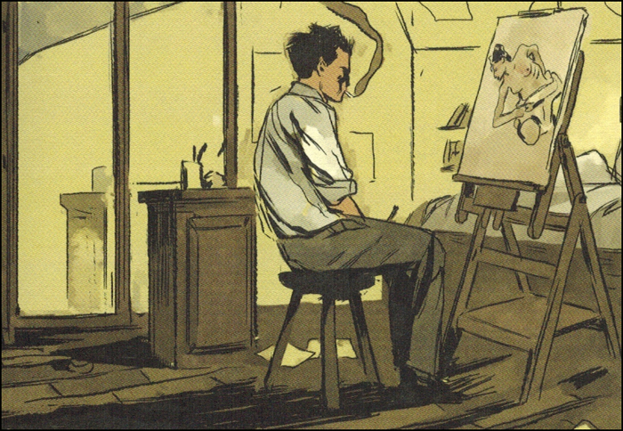 J’avais commencé un projet qui était complètement différent et au détour d’une librairie je suis tombé sur un livre qui parlait de la vie d’Egon Schiele. J’ai découvert qu’il était mort très jeune, qu’il avait fait de la prison à cause de ses tableaux et ça a complètement changé le rapport que j’avais à son œuvre. Très vite, j’ai cherché à en savoir plus sur lui, sur sa vie et j’ai découvert qu’on ne connaissait en réalité que peu de choses, à part les grandes lignes. Faire une bande dessinée sur Egon Schiele a été pour moi une façon d’enquêter et de donner à lire ce qu’on ne trouvait pas sur lui.