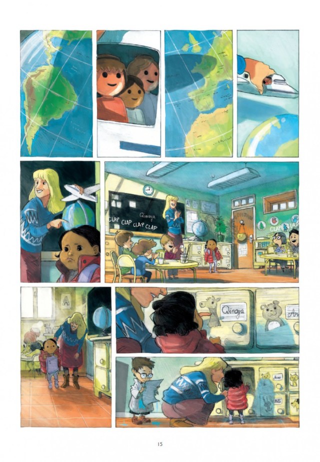 Le titre du livre pose tout de suite l’histoire. Le lecteur va suivre une aventure humaine qui va bouleverser plus d’un coeur. Une terrible catastrophe naturelle va toucher le Pérou. Ce couple en mal d’enfant va faire le trajet pour ramener une adorable petite fille. C’est à partir de là que le récit commence. Tout en douceur, avec des couleurs chaleureuses que Zidrou et Arno Monin, nous emmène à la rencontre d’une famille.