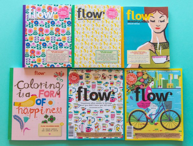 Le magazine Flow est né en Hollande en 2008 par l’éditeur Samona. Il se vend également en anglais dans une vingtaine de pays. Le concept se développe en Allemagne en 2013 par l’éditeur Gruner + Jahr, où il atteint une publication de 140 000 exemplaires au bout d’une année. Alors Prisma Media (Femme actuelle, Capital, Géo…) sent qu’il tient un bon concept. «La ligne éditoriale de Flow surfe sur l’idée qu’il faut oser prendre le temps, quitte à perdre son temps», résume Gwendoline Michaelis, rédactrice en chef. Le 12 février 2015, il arrive en France et trouve très vite son public. 50% de son contenu provient des versions étrangères.
