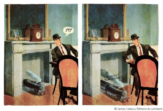 Charles Singulier est un homme bien ordinaire. Sa vie n’est pas très palpitante. Mais un jour il décide d’acheter un chapeau melon au marché aux puces de Marolles à Bruxelles. Et là commence une histoire assez extraordinaire. Je suis tout de suite rentrée dans cette aventure au combien bien écrite par Vincent Zabus et combien magnifiquement dessinée par Thomas Campi. Notre personne si Singulier commence à avoir des hallucinations et rentre dans les peintures de Magritte. Imaginez la surprise que cela doit être. C’est un vrai ravissement pour les yeux et pour l’esprit avec lequel le scénariste joue.