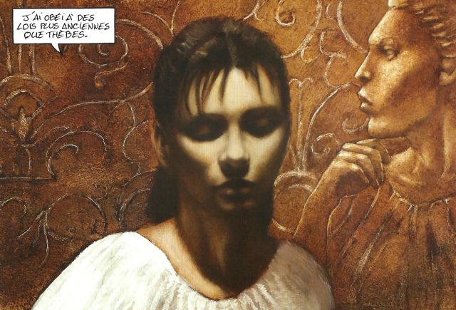 J’ai choisi cette bd, non pour son titre mais pour sa couverture que j’ai trouvé magnifique. Puis ensuite pour la référence à l’histoire d’Antigone. Un personnage tragique sorti de l’imagination de Sophocle qui depuis n’a jamais cessé de hanter les programmes scolaires et les théâtres du monde entier. La pauvre jeune fille n’a pas eu de la chance dans la vie. Elle a dû avoir Œdipe comme père et ces deux frères se sont affrontés pour avoir le pouvoir de la ville.