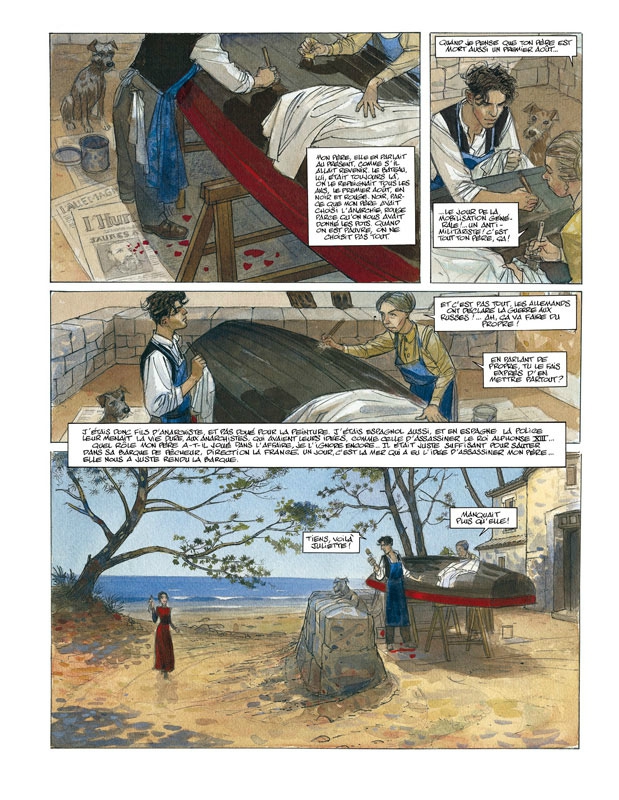 En août 1914, quand éclate la guerre, cette » saleté de chien d’aveugle qui nous tirait dans la merde et bouffait nos gosses « , le destin de Mattéo bascule. Fils d’un anarchiste espagnol, disparu à jamais en mer, Mattéo, parce qu’il est étranger, échappe à la mobilisation générale.