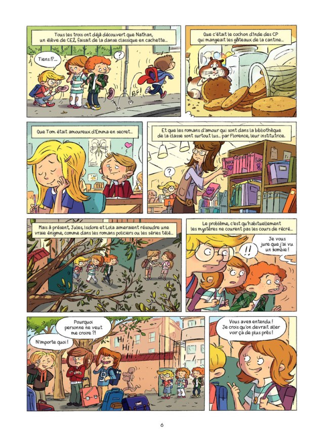Il y a partout des mystères à résoudre. C’est une chance pour Isidore, Lola et Jules qui vont pouvoir mettre leurs talents dans leur Atelier Détectives. Ils devront affronter un zombie, un T. rex et une sorcière. Y arriveront-ils ?