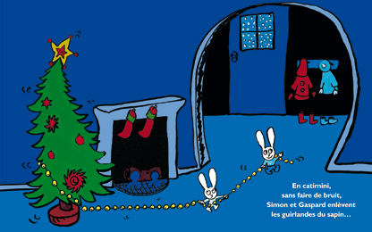 À Noël, c’est connu, le Père Noël descend du ciel pour apporter des cadeaux aux enfants. Simon et son petit frère Gaspard ont tout préparé avec leurs parents : un sapin décoré, un goûter pour le voyageur en traîneau et ses rennes. Mais aïe ! Il neige à gros flocons. C’est bien joli, mais si cette tempête empêchait le Père Noël de trouver la maison ? Simon et Gaspard sont très inquiets, auront-ils leurs cadeaux ? Vite, il faut aider le Père Noël…