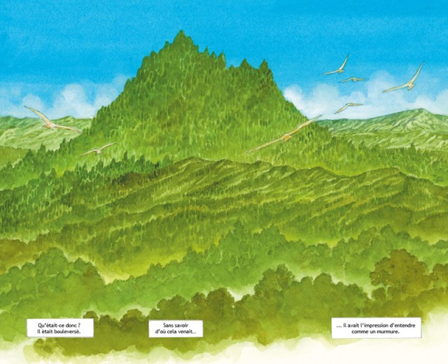 Il nous transporte dans les années 50, dans la préfecture de Tottori, la région natale du mangaka. Un séisme de magnitude 6 sur l’échelle de Richter a fait apparaître une partie ancienne de la forêt où l’on trouve un minerai précieux. Une exploitation minière est lancée. Mais Wataru qui arrive dans la région suite au divorce de ces parents va s’y opposer. Seul ? Non, il va être aidé de ces amis et surtout des animaux ainsi que de la forêt, dont il entend les voix. On ne saura jamais s’il y arrivera. Cet ouvrage est empreint d’espoir et de magie. Les sublimes dessins à l’aquarelle mélangeant les délicats camaïeux de bleu, vert et jaune nous emmènent dans un univers onirique merveilleux. Chaque page est un délice de lecture.