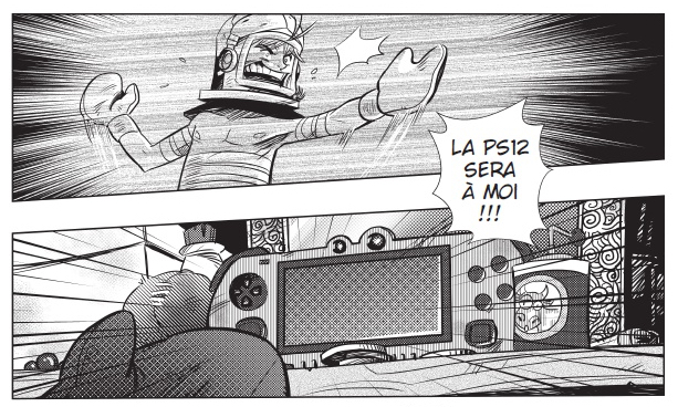 Un mystère qui trouvera une réponse dans le tome 3 dont la lecture se fera très bientôt. Emmanuel Nhieu joue à merveille avec les codes de la bd japonaise et européenne avec des clins d’œil à la culture populaire. La structure reste assez semblable à ce que l’on a déjà pu lire. Sans oublier que le héros apprend à être moins égoïste, qu’il se fait des amis et qu’on l’apprécie pour ce qu’il est même si il est un peu impulsif. J’ai adoré lorsque la PS2 fait sortir Pearl pour appeler Tatau à l’aide. C’était très bien trouvé.