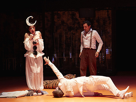 Un Monsieur Loyal vient sur le bord de la scène pour parler de son spectacle. Vous ne saviez pas ce que vous veniez voir? Vous allez surpris car les animaux sauvages vont prendre aspect humain. Le personnage central est une femme, un être insaisissable : Lulu. Une héroïne qui a pris naissance sous la plume de Frank Wedekind (1860-1918) en 1894 pour dénoncer l’hypocrisie sexuelle de la société allemande. La censure a fait rage, obligeant l’auteur a proposé une nouvelle version, qui sera définitive en 1913. Le texte plaît puisque Patrice Chéreau, Robert Wilson ou Stéphane Braunschweig l’ont mis en scène. C’est au tour de Paul Desveaux de relever ce défi. Il choisit une mise en scène, simple et ingénieuse. Quelques éléments de décors qui se transforment au besoin. Des jeux de lumière discrets qui soulignent avec délicatesse le nécessaire.