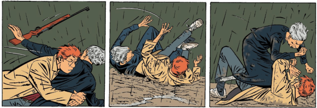 Ce n’est pas la première qu’un week-end à la campagne ne réussit pas Jérôme. La dernière fois il était tombé dans une histoire de viol, de tentative de meurtre et de suicide. Là, c’est une toute autre histoire et qui a une fin de meilleure augure. Babette voulait juste aller rendre visite à une amie à la campagne qui vient d’accoucher d’un petit Valentin. Mais voilà que la naissance va révéler un secret qui va engendrer des situations périlleuses. La vieille va révéler sa véritable nature et Jérôme va en découdre avec elle. Alain Dodier nous propose alors une magnifique scène de combat en six cases qui valent le coup d’oeil.