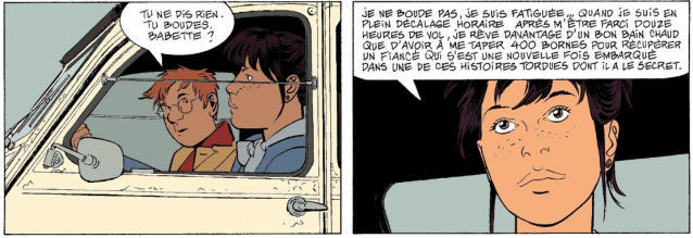 Encore une couverture alléchante qui promet de l’action. Jérôme surpris lève les mains face à trois hommes cagoulés et armés. Dans quel pétrin notre cher détective s’est-il encore mis? Les premières pages de la bd nous racontent le fait que deux hommes en hélicoptère atterrissent en urgence sur la route puis ils volent une voiture avec son chauffeur à l’intérieur. Mais il y a une dissension entre les deux hommes et un coup de feu part. C’est le début de l’intrigue avant que l’on reparte sur le tranquille quotidien de Jérôme.