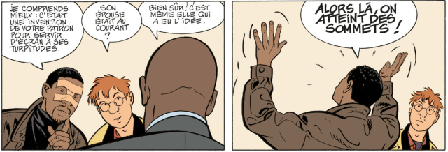 Pour une première fois, j’ai été déçue par le récit qui m’a été proposé. On retrouve beaucoup des personnages secondaires avec le curé, Burhan et bien entendu, la charmante Babette. La structure est comme les tomes précédents avec des indices qui nous sont donnés au fur et à mesure. Cependant, il ne se passe pas grand chose. La jeune fille est une mère porteuse que des gens riches ont a fait venir d’Afrique. Comme l’enfant en gestation n’est pas parfait, les commanditaires veulent la faire avorter. Elle s’y refuse et s’enfuit. C’est là qu’elle va rencontrer nos personnages. J’aurais espérer une prise de partie face à une situation d’exploitation humaine et pas le choix d’une mini-vengeance tout simple ainsi qu’un gentil happy end. Il est peu probable que la jeune fille de retour dans sa famille en Afrique, qui a fuit, en plus enceinte soit bien accueilli. Même si un homme l’accompagne, qui va veiller sur elle, n’est ni son mari, ni le père de l’enfant. Culturellement, c’est assez peu probable. Alors pourquoi avoir choisi un sujet sensible si c’est pour en donner une histoire ordinaire et sans grand intérêt? Je trouve cela étrange. C’est bien dommage en tout cas.