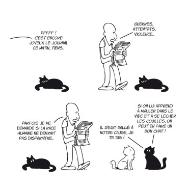 Au péril de sa vie, Lapuss’ vous dévoile enfin ce qu’il se passe dans la tête de l’animal le plus maléfique de la création : le chat. Faites attention à vous !