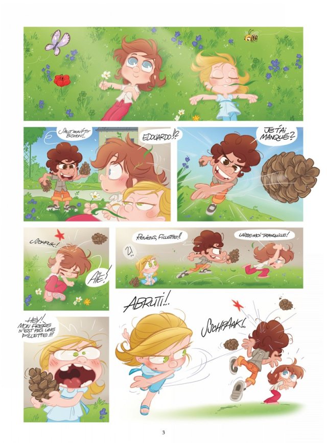 Aussitôt le tome 1 terminé, je suis arrivée à me procurer le tome 2. Et je vous avoue avoir préféré cette suite. On retrouve le côté acidulé des couleurs avec la rondeur des formes mais dans un autre contexte. Adieu l’école et bonjour la mer, la plage de sable, les couchés de soleil. David Gilson a du se faire plaisir dans la réalisation des décors et des costumes. J’ai beaucoup apprécie le jeune garçon, Cody, qui aime porter des vêtements féminins. Une petite fantaisie singulière touchante. D’autant plus, que la petite sœur de Bichon est amoureuse de lui. L’amitié va les lier et pendant ce temps, on va mettre la théorie du genre à la poubelle. Les pages se tournent avec plaisir avec le sourire qui ne nous quitte jamais.