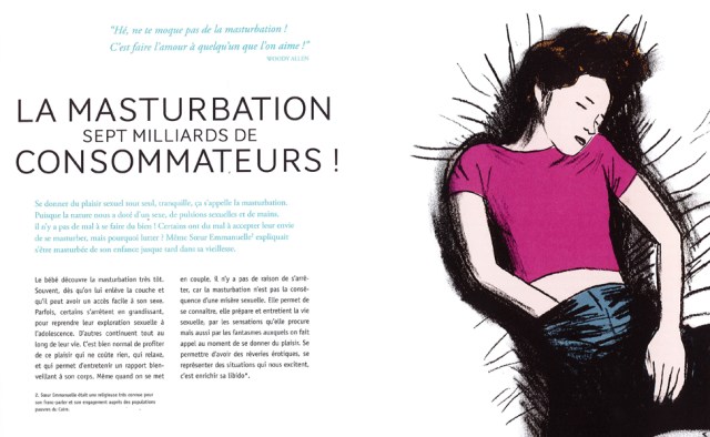 Rien n’a été interdit dans les sujets abordés. J’approuve beaucoup cette approche car les adolescents voient tellement de choses et entendent bien d’autres. Comment savoir alors ce qui est vrai de ce qui ne l’ai pas et ce qui est normal de ce qui ne l’est pas. En plus, il faut prendre en compte la pression sociale et les comportements tronqués dans les films pornographiques. Comment on fait l’amour ? Ca fait mal la première fois ? Dois-je avoir honte de me masturber ? Est-ce que c’est sale d’avoir ces règles ?