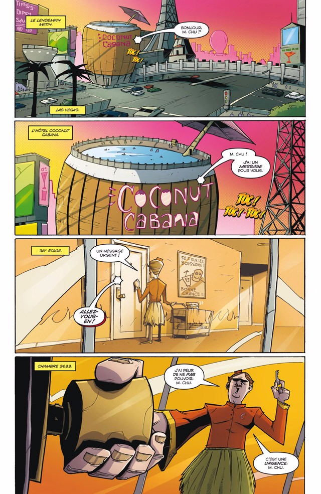 L’univers de Tony Chu devient encore plus dément. Un chicken Poyo guerrier. Une Olive agent infiltré. Un dauphin parlant. Un mariage à Las Vegas. Ah non, deux. Un légume extraterrestre. Des animaux qui parlent. Mais rassurez-vous, personne n’a été blessé lors de la création du tome le plus déjanté de la série.