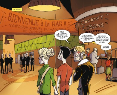 Le récit est très riche car notre super agent de la RAS va être appelé un peu partout pour trouver de terrible meurtrier. On va découvrir des expériences scientifiques improbables avec un homme qui mange du poisson pour son cerveau par exemple. On découvre également des agents spéciaux avec des dauphins, des écureuils, des phoques… La plupart connaîtront un futur funeste. El Poyo était un peu absent et je commençais à me demander pourquoi. Les réponses vont nous être données et j’ai adoré. Un coq au pouvoir extraordinaire n’a peur de rien. Les plus gros méchants en ont peur. Ce n’est pas le seul personnage que l’on redécouvre. Il y a aussi Olive, la fille de Tony qui est sur une table d’opération. Va t’elle pouvoir s’en sortir? Et surtout à quoi va t’elle ressembler? Et j’allais oublier, notre héros vient de se marier. Une femme qui a des talents et des ressources. Je ne doute pas qu’on la retrouvera dans les prochains tomes et qu’elle va jouer un rôle important.