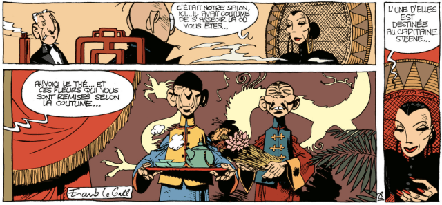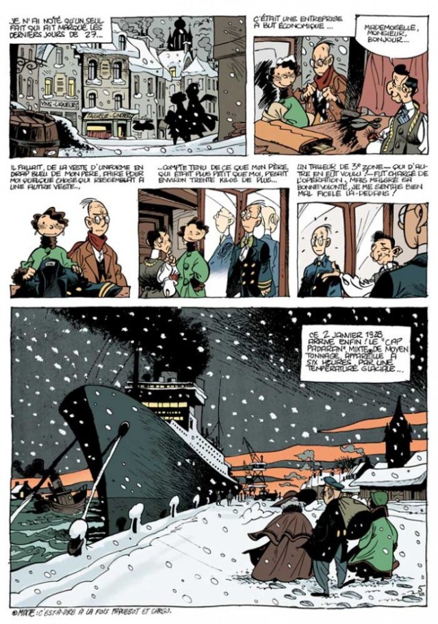 Le jeune marin dunkerquois est né en 1902 et part sur les mers du monde entre les deux guerres mondiales. Frank Le Gall a présenté pour la première fois son héros dans les pages du magazine Spirou en 1984. Les éditions Dupuis exigeait avoir trois albums pour sortir sortir les premiers tomes de façon rapprochées. Ce qui explique la sortie de ce premier album en 1987. Le treizième tome est sorti en 2018 et notre personnage a bien changé. Ce n’est pas sans me rappeler l’évolution de Lucky Luke. Le style s’affirme au fur et à mesure des pages. Les pré-publications permettent d’expérimenter. Le style reste classique quand même.
