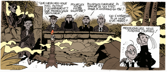 Théodore Poussin, part sur les traces de Charles Steen, son oncle disparu depuis 1916 à Haïphong. Il arrive à monter sur un bateau et pose des questions. Mais les réponses données restent assez vagues. Est-il vraiment mort? Un élément de réponse nous serons donnée à la fin, du moins c’est ce que le scénariste veut nous faire croire. L’histoire nous mène doucement au coeur d’un conflit et de secrets. Le garçon prend de plus en plus de confiance et se retrouver face à son destin, qui se nomme Novembre.