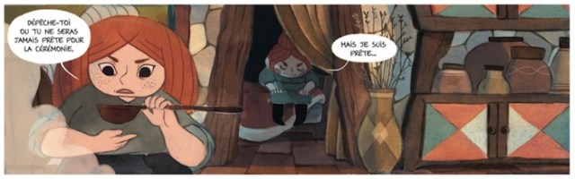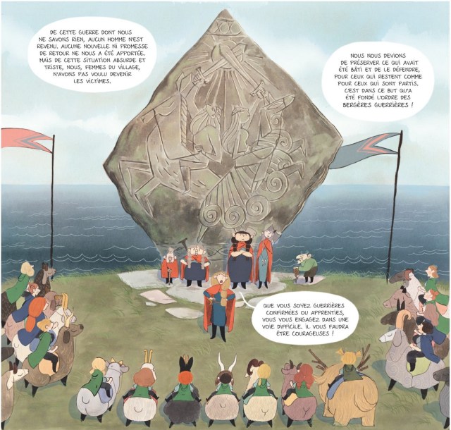 Molly est trop heureuse du haut de ses dix ans. Elle va pouvoir enfin intégrer l’ordre des Bergères Guerrières. Des femmes courageuses, téméraires qui sont prêtes à tout pour défendre leur village. Elles ont du s’organiser quand les hommes sont partis en guerre. Maintenant, elles veillent, elles forment et transmettent leur savoir. Tir à l’arc, épée, armes blanches… tout y passe et les demoiselles y mettent de bon coeur dans l’apprentissage. La petite chose assez drôle c’est le fait qu’un garçon va intégrer la fine équipe. Une première qui montre la détermination de l’enfant et l’ouverture de cet ordre uniquement féminin. Il va devoir apprendre comme tous le monde. Et son aide sera nécessaire car une ombre plane sur la tranquillité du village.