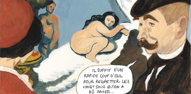 Manuele Fior intègre avec beaucoup d’intelligence des scènes de quotidien dans l’histoire qui sont en réalité des tableaux. Comme Degas jeune qui discute avec une prostituée qui est entrain de repasser qui n’est pas sans rappeler « Repasseuses » réalisée entre 1884 et 1886. Ou encore la rencontre d’Ingres avec une jeune fille qui va lui servir d’inspiration pour « La Source ». Il le fait dans le cadre d’un récit structuré qui permet d’aller à la rencontre de ces artistes qui se retrouvent pour discuter de leur art non conventionnel. Leurs peintures sont refusées dans le salon officiel. Alors quoi de plus normal de créer alors leur propre salon qui se déroulera chez le photographe Nadar.
