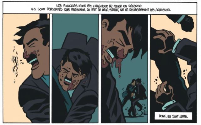 Cet album est un vrai régal aussi bien pour la qualité d’écriture, la précision du dessin et du cadrage et la perfection de la colorisation. Un trio exceptionnel qui sait faire voyager le lecteur. J’avais été conquise par les deux premiers tomes et ce nouvel épisode est encore meilleur. Le récit est fluide, complexe et palpitant dans une atmosphère d’un sombre polar noir. La mise en ambiance se fait directement dès les premières pages avec un assassinat. Le cadrage assez cinématographique avec des panoramiques immersifs, style vieux film en noir et blanc est époustouflant. Un plaisir à chaque page. Tout l’ouvrage se dévore. J’ai pris mon temps pour bien tout regarder et profiter pleinement de cette lecture. Elle a même conquis certaines personnages plutôt adeptes de la ligne claire. Une oeuvre réussie sous tout rapport.
