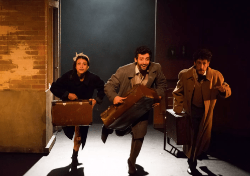La structure n’est pas sans rappeler la narration à tiroirs utilisée par Alexis Michalik, notamment dans la « Porteur d’histoires » qui se joue avant. Ainsi des personnages du présent se baladent au sein même de l’histoire du passé. Malgré le sujet qui peut paraître assez tragique, la bonne humeur est de rigueur. On y découvre un humour un peu facile avec l’enthousiasme de Damien Jouillerot qui incarne entre autre le simple d’esprit ou le führer en compagnie d’Hélie Chomiac, en soldat SS. Ce côté bon enfant se compense par le rôle du médecin à l’initiative de la supercherie. Un très grand bravo pour la prestation de Charlie Fargialla tout en finesse et en sensibilité. En binôme de jeu avec Gaël Cottat, qui est plus réservé. Dans l’ensemble la prestation des comédiens est étonnante et pleine d’énergie. Les décors roulants tournent et nous font voyager au cœur de la ville. De légers détails qui suffisent à nous raconter une histoire émouvante.