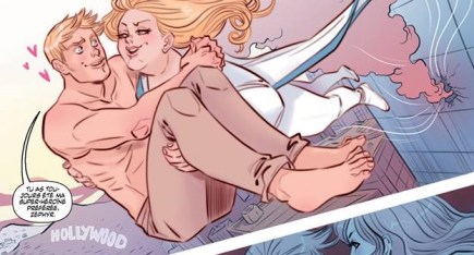 Un de ces traits de caractère est de fantasmer les yeux ouverts. Elle rêve de retrouver son ex et de le prendre dans ces bras. Il sera torse nu et follement amoureux d’elle. On se doute bien que sa réalité en est bien loin. Ce qui ne l’empêche pas d’espérer même si la déception n’est jamais très loin. Une héroïne assez moderne qui vit au cœur du XXIème que nous connaissons. Ainsi on peut au mieux s’attacher à elle. Malgré ces doutes, elle est reste positive et souriante sans pour autant être niaise. Le rendu graphique travaillé par Francis Portela et la française Marguerite Sauvage est dynamique et très coloré. L’histoire déborde d’énergie avec ces couleurs pastel peps. Jody Houser fait un scénario cohérent et précis. Le tout donne un tome passionnant qui nous fait tourner les pages avec délices.