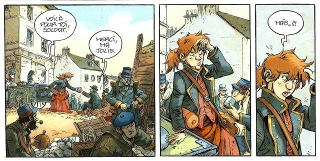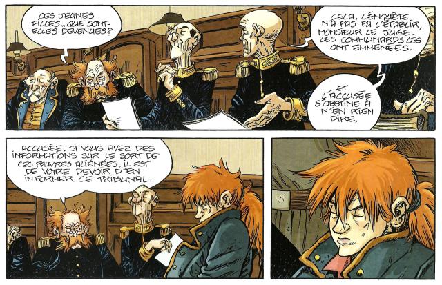 Pour ce dernier tome autour des Communardes, Wilfrid Lupano a décidé d’aborder un autre sujet en mettant toujours les femmes au cœur de l’histoire. Pour ce troisième tome, il va faire appel au dessinateur Xavier Fourquemin qui va lui aussi créer une ambiance bien particulière assez éloigné de Lucy Mazel (qui a fait le premier tome). On retrouve son trait ligne claire de sa série « Le train des orphelins » même si les couleurs d’Anouk Bell utilisées sont plus pastels. Tout se recoupe avec d’autres personnages déjà rencontrés précédemment. L’histoire se structure à merveille même si le texte est ici plus dense que les deux précédents tomes. L’émotion se ressent à chaque page tellement l’injustice est présente. Et cela l’est d’autant plus car l’histoire s’appuie sur des témoignages et documents d’époque. Pour preuve le titre de la bande dessinée : « Nous ne dirons rien de leurs femelles… », qui est une référence à Alexandre Dumas fils dans Le Figaro à propos des communards. Une image bien simplifiée des femmes pendant cette période qui pourtant n’ont pas hésité à prendre les baïonnettes et monter sur les barricades. Mais l’Histoire les laissera dans l’ombre des hommes.