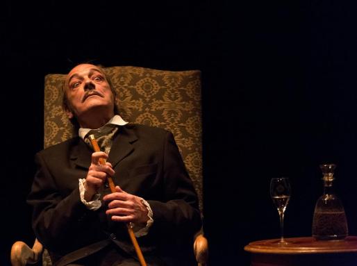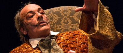 L’idée est bonne et séduira de nombreux passionnés d’art. Salvador Dali est un sacré personnage, égocentrique à souhait. D’ailleurs, quelques personnes âgées discutants avant d’entrer dans la salle étaient ravies d’aller passer une soirée en compagnie du personnage car elles allaient bien rigoler. J’espère que la déception n’a pas été trop grande. Car même si les éléments évoquées comme sa peinture, ses amours « O Gala » et ces amis/ennemis comme Picasso, Lorca, Breton… sont assez intéressants et peuvent prêter à sourire, il manque du rythme. Où est l’énergie incroyable de cet excentrique à deux pattes ? Les longueurs se font ressentir. L’écran en fond où se projette parfois des extraits de vidéo ou des peintures contribue à la cette impression de lenteur. Les effets type WordArt pour vidéo donnent moins de crédit à cette hypothétique rencontre. L’accent catalan de Philippe Kieffer (alias Dalí) n’est pas très agréable à l’oreille. Puis on s’y fait car il met beaucoup de conviction dans son personnage. La moustache et les costumes permettent vraiment de fondre comédien/peintre. Mais cela ne fait pas tout.