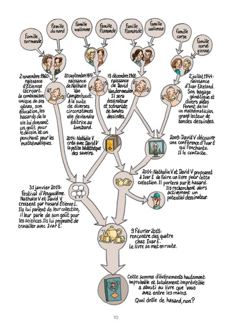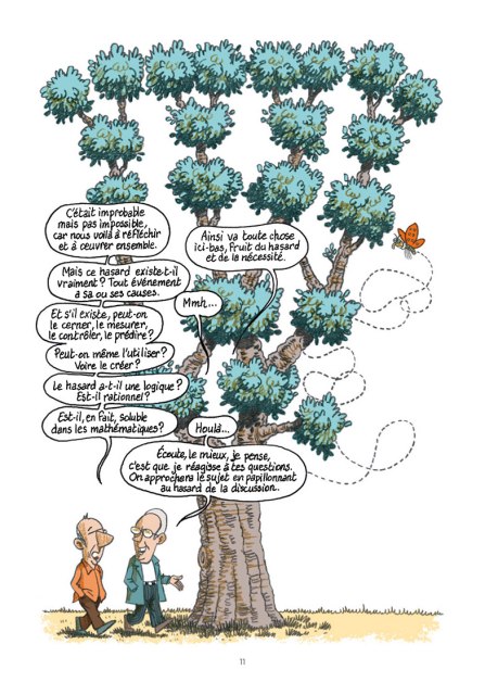 Pour le tome 6 de la collection La petit Bédéthèque des savoirs, la thématique qui a été choisie est le hasard. Comme tous les albums de cette série, nous allons avoir d’un côté un dessinateur : Etienne Lécroart et de l’autre un scientifique : le mathématicien Ivar Ekeland. A eux deux, ils vont tenter de vulgariser l’approche du hasard par les mathématiques. Attention, va falloir bien vous accrocher aux pages pour bien tout comprendre.