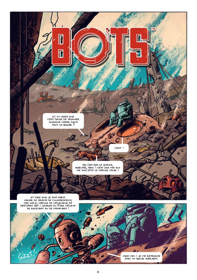 Rip-R avait un rêve enfant : être conducteur de fusée. Mais il fera ce que sa variété de robots l’oblige : mécanicien. En sortant major de sa promotion de l’Universitech il espérait s’occuper de Race-Bot ou de Movie-Bot. Et non, il ira sur les champs de bataille avec un War-Bot et son chien porteur Snoop-i. Toutefois, ce robot, prénommé War-Hol n’est pas si banal. Ce tas de ferraille ne souhaite pas combattre. Bien au contraire, quand il faut affronter l’ennemi il part dans le sens inverse. Le Scavenger, le robot qui doit détruire tous les robots après le combat l’identifie pour le massacrer. Sauf que War-Hal change, ces yeux deviennent rouges. Il se transforme en un véritable et sauvage combattant. Une fois l’ennemi hors-service, il s’éteint et s’ouvre. Et voilà qu’un bébé humain sort de son vendre. Que peut-être cette petite chose ? Pour comprendre ce qui vient d’arriver, la fine équipe part enquêter sur les traces de leur passé et de leur espèce.