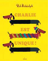 Déjà, la couverture jaune avec trois chiens et le titre : « Charlie est unique » tape à l’œil. Le dessin est séduisant et ça pétille de couleur. Le teckel se prête très bien pour faire des formes allongées et pouvoir jouer avec l’aspect répétition. J’apprécie beaucoup la page avec quatre espaces où les chiens font la même chose avec la piscine, la voile, l’armé et les scoots. Fond blanc avec quatre couleurs assez intenses, impossible que le regard ne se pose pas sur les images pour mieux les regarder. Rob Biddulph réalise un très joli album. On sent le côté anglais dans le graphisme et la couleurs qui sont très harmonieuse et agréable à lire. Le sujet choisi avec la différence et l’acception se trouve très bien abordé. Pas de grands mots où de situations trop compliquées. Le choix de la transposition dans le monde canin permet de mettre une distance pour l’enfant qui en comprend tout de même la substance. Le personnage de Charlie est attachant et on a envie qu’il soit accepté par les autres. Il ni a aucun doute que les enfants tombent sous le charme de cette adorable chienne.