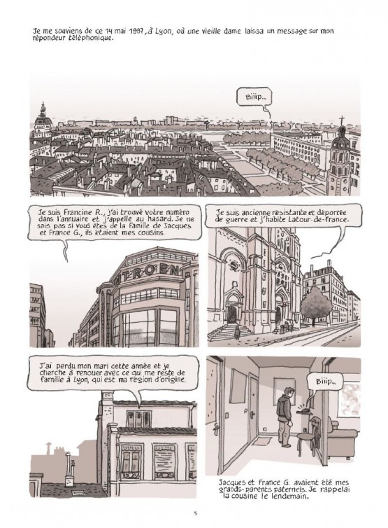 Tout à commencer lorsque Francine contacte Boris Golzio en 2000 pour renouer avec les derniers membres de sa famille. C’était la cousine germaine de la grand-mère maternelle. Elle est de passage sur Lyon pour accompagner des collégiens lors d’un voyage thématique sur la résistance et la déportation, alors pourquoi ne pas se rencontrer à cette occasion ? Ils vont plusieurs fois se retrouver ainsi qu’une étudiante en Histoire et vont récolter la mémoire de cette femme. Il a fallu quelques années pour que Boris Golzio se lance dans la restitution de l’histoire de Francine en bande dessinée. 13 mois de travail ont été nécessaire afin d’adapter ces souvenirs à un récit chronologique. Sans oublier le travail de recherche qui a été nécessaire. Il évoquera le courage des résistantes Geneviève De Gaulle-Anthonioz (1920 – 2002), Marie-Claude Vaillant-Couturier (1912 – 1996) et Germaine Tillon (1907 – 2008). Au final, ce long travail donne naissance à un très joli album émouvant. L’auteur a choisi de ne pas faire une histoire débordante d’émotions larmoyantes. Mais il faut le choix de présenter simplement les faits comme ils lui ont été racontés. Les trois couleurs majoritairement utilisées (noir, blanc et gris) mettent une certaine distanciation. Toutefois, on voit quelques touches de couleurs avec ces robes bleue, blanche ou rouge ou la plaque commémorative des anciens déportés, internés et familles de disparus. L’album se termine sur l’enterrement de Francine en 2003. L’auteur conclu avec cette très jolie phrase qui résume tout : « L’Histoire de Francine ne m’a plus quitté. D’elle, il me reste sa voix, son humilité, sa simplicité. Et la conviction qu’il ne faut jamais baisser les bras. »