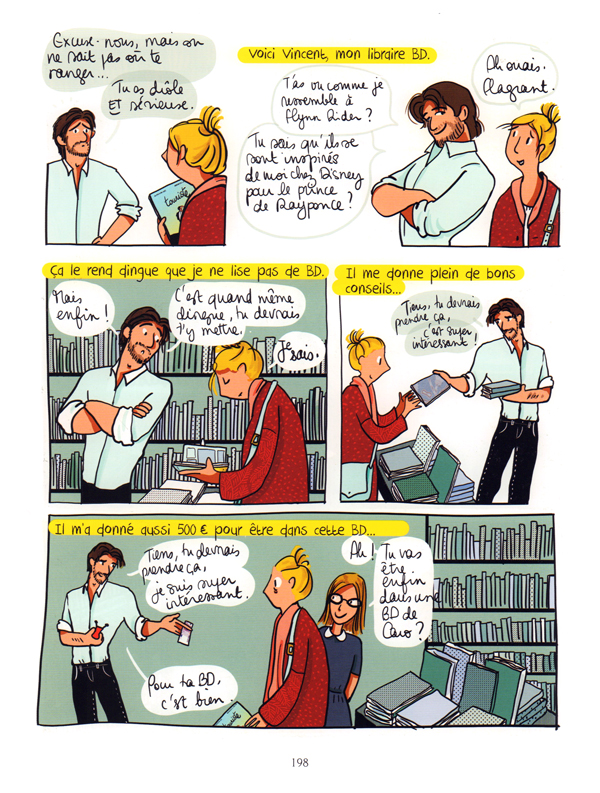La dessinatrice nous présente les envers du décor des métiers du graphisme. Un milieu très concurrentiel, très difficile au quotidien mais au combien enrichissant. Elle nous permet de suivre tout son parcours avec la perplexité des parents sur le choix des études, la formation dans l’école privée, le premier job en agence de pub, se mettre à son compte, créer des bandes dessinées… Une façon d’aborder les peurs, les doutes, les gens malhonnêtes, ceux qui ne paient pas la prestation, les menteurs. Le tableau n’est pas tout noir. Car à force de travail, bien souvent nocturne, elle arrive à décrocher des contrats. Et grâce au soutien de son homme et de ces amies, elle se lance même dans l’aventure de la bande dessinée. Des bd d’ailleurs souvent considérée que pour les filles, ce qui l’énerve beaucoup. Après avoir raconté l’aventure de son déménagement à la montagne, un guide de régime, elle s’ouvre à d’autres sujets comme la dépression, « Chute libre, carnets du gouffre » ou sur le syndrome d’Asperger « La différence invisible ». Cette nouvelle création raconte toute sa vie et en plus grâce au soutien de Delcourt, une grosse maison d’édition qui a misé sur son talent. Et elle profite d’ailleurs de sa bd pour montrer sa connaissance du dessin. Au fur et à mesure que nous la suivons dans l’histoire, son style graphique évolue, devient plus précis, plus varié. Un vrai régal pour les yeux de découvrir cette diversité et cette richesse.
