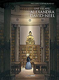 Le premier tome nous avait permis de découvrir les aventures Alexandra David–Neel dans sa jeunesse. Ce second tome nous donne encore quelques morceaux de vie de l’aventurière sur une plus grande partie de sa vie. Fred Campoy et Mathieu Blanchot jouent encore avec le rapport des couleurs. Les gris/marrons pour le récit actuel et les couleurs pour les souvenirs. Un contre-emploi par rapport à ce que l’on peut voir d’habitude. Le choix des évènements racontés sont très important comme cette première fois où un occidental et d’autant plus une femme rentre à Lhassa. Un véritable défi qu’elle a relevé avec bravoure et ingéniosité. Et la référence au musée Guimet, avec la fameuse et magnifique rotonde que nous pouvons toujours voir. On trouvait des informations autour de la culture asiatique Paris. Une bonne base de données qui lui a servi lors de ces périples. Pour donner un peu de consistance à toutes ces brides de récits issus du témoignage de Marie-Madelaine Peyronnet, on trouve à la fin de la bd des explications sur la culture bouddhique, des objets asiatiques et le musée Guimet. Une façon de clôturer intelligemment cette bd. On nous donne de quoi aiguiser notre curiosité pour pousser la découverte autour de cette femme exploratrice de caractère. J’ai bien envie d’en savoir plus sur ces voyages. Elle fait partie de ces femmes qui ont marqué l’Histoire comme Isabella Bird, Amelia Earhart ou Nelly Bly.