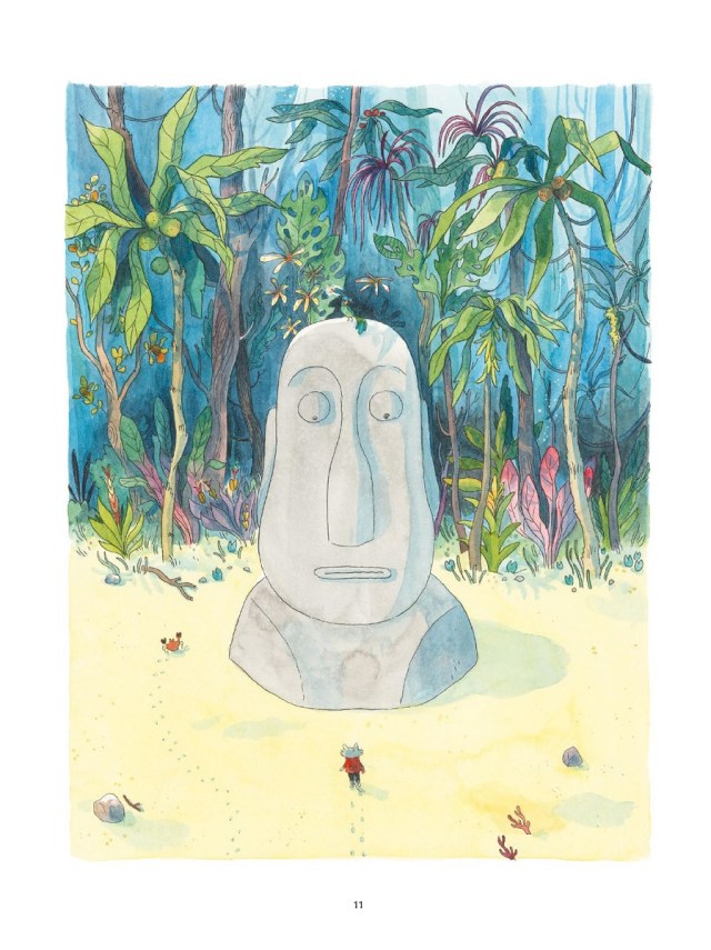 La couverture nous donne un avant goût de l’univers dans lequel nous allons nous plonger. Un monde riche, varié, coloré et peuplé d’étranges personnages. Les quatre personnages phares : Sacha, Charlie, Rose et la Bête sont mis dans une bulle au dessus du titre. Ils vont être au coeur de cet incroyable aventure. L’île se met au diapason des émotions de Charlie, ce petit frère maltraité par son grand frère, Sacha. Il n’a jamais hésité à l’humilier ou le torturer. A chacun de ces souvenirs des loups-cauchemars sortent de son imaginaire et deviennent réels. La cruauté prend un vrai visage. Une façon élégante de parler de la maltraitance et des conséquences même si elles ne sont pas visibles. Loïc Clément, grâce à des scènes de flash-back, explique les situations qui ont conduit à ce chaos. L’amour et le pardon peut-être une porte de sortie si l’on sait reconnaître ces tors. Le style d’Anne Montel, qui n’est pas sans rappeler celui de Clément Oubrerie, met beaucoup de douceur avec son travail à l’aquarelle. Grâce à l’absence de case marqué, même si les couleurs vives restent présentes, on ressent la noirceur qui envahit l’île. Une parfaite adéquation avec le travail du scénariste. Derrière la lumière, la noirceur et parfois il est possible que la noirceur laisse place à la lumière.