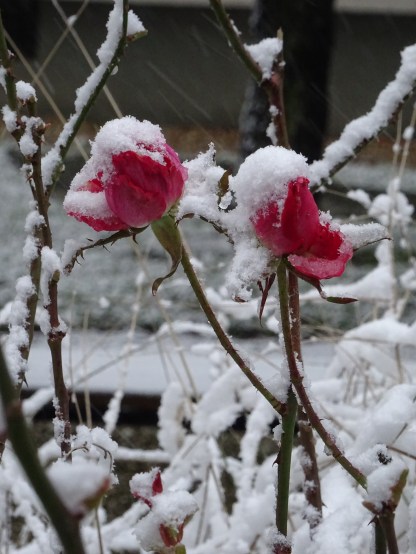 Je viens pour le chocolat chaud et regarder par la fenêtre ces jolies roses enneigées !