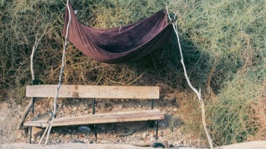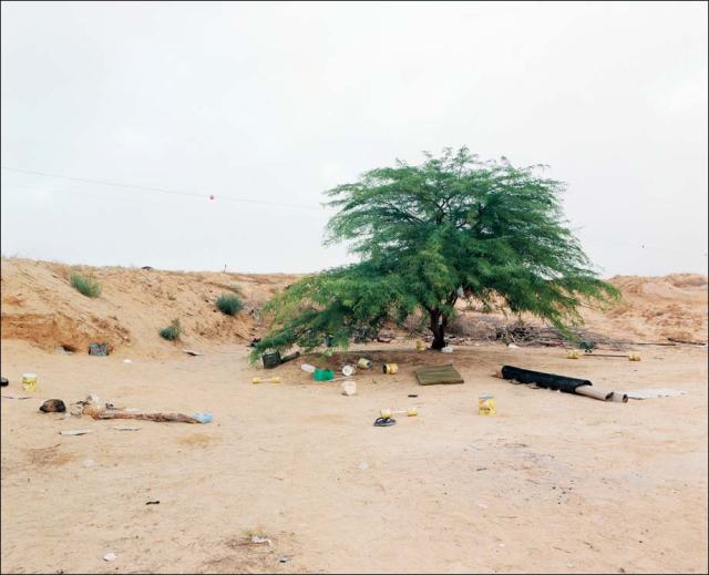 Entre 2014 et 2016, Ron Amir rencontre ces migrants et échange avec eux. A travers ces photographies, ils souhaitent montrer que des espaces de lien social, de convivialité qui se créent dans le désert. Les morceaux de bois, les pierres sont rassemblées pour créer des bancs, des sièges, des fours… Des lieux afin qu’ils puissent se rassembler pour discuter, fumer, écouter de la musique ou encore manger.