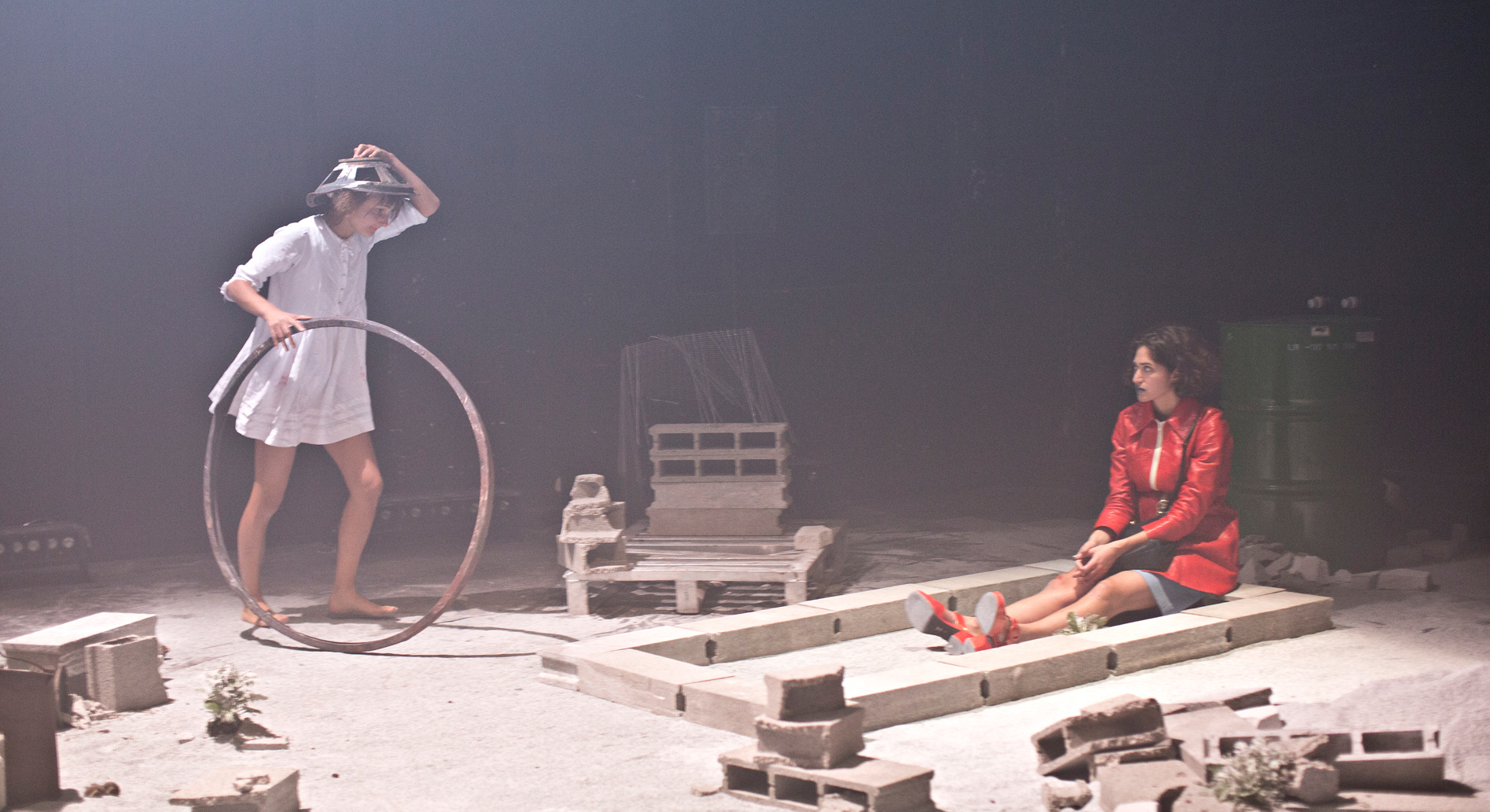 Pour sa deuxième pièce, Pauline Haudepin s’inspire très librement du conte populaire allemand des frères Grimm : Raiponce. Laissez de côté tout l’imaginaire Disney qu’il vous vient à l’esprit. Il faut se laisser porter dans ce monde où l’on ne voit que les vestiges d’une utopie urbaine qui s’est écroulée. Nous sommes au cœur d’une décharge où ruines, gravats, sable se voient à perte de vue. Dans cet espace riche d’espoirs déçus, vivent des gens hagards. Le marchand de sable vit dans son sous-sol aménagé. Il possède un savoir-faire que beaucoup lui envie. De cette plante sauvage, la raiponce, il arrive à un extraire une drogue qui permet le temps d’un instant de se sentir bien et de fuir la triste réalité. Un jour, Shéhérazade arrive chez lui et lui réclame de cet hallucinogène. Les autres refusent de la payer pour du sexe vue qu’elle est enceinte. Il lui propose alors un échange, une grande quantité de raiponce contre son enfant. Quand la tractation eut finit, Mister Sandman enferme la magnifique Raiponce en haut d’une tour. C’est travesti en femme qu’il lui rend visite, la nourrit, lui parle. La douce enfant entend des voix et leur répond. Parfois, il lui vient l’idée de rêver du dehors qui doit être si vert. Attiré par une force inconnue, Lazslo, jeune pyromane arrive dans ce lieu et sympathise avec le marchand de sable. Il cherche quelque chose qu’il ne sait nommer. Et il va trouver le passage menant à Raiponce, le chemin vers son cœur et ces réponses. Toutefois, il s’est approché trop près du trésor du marchand de sable. Pour la peine, ce dernier lui jette un liquide sur les yeux et il en perd la vue. Mais l’Amour va le guider vers la belle demoiselle et ensemble, ils vont écrire une nouvelle histoire pleine de fantaisie et de folie.
