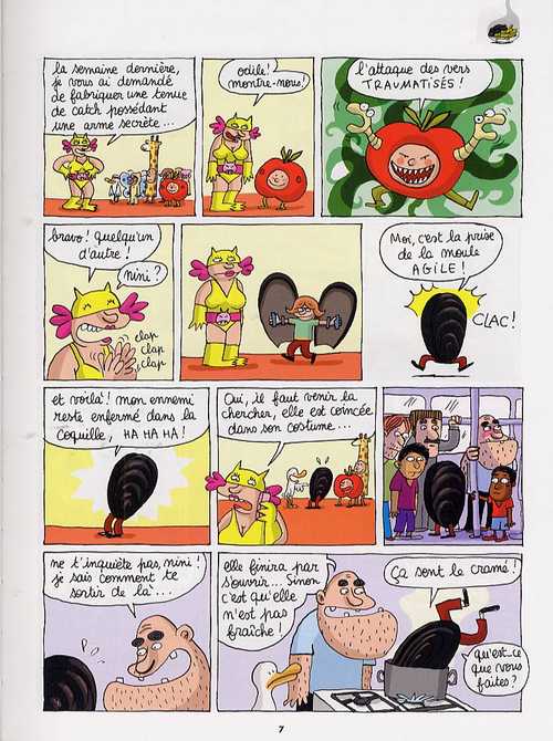 Il ni a pas à dire Lisa Mandel possède une imagination débordante. J’avais déjà adoré le premier tome avec cette petite peste qui fait disparaître ces parents et qui se fait des amis complètement cinglés. Et là, un nouveau tome qui monte de niveau dans l’absurdité la plus totale. Elle ne s’interdit absolument rien et heureusement. Car sinon, comment je pourrais passer un aussi bon moment de lecture ? Chaque petite histoire est plus loufoque que la précédente. Déjà des mini-pingouins qui habitent un frigo, c’est déjà assez étrange mais en plus qui hébergent des animaux de passage, il fallait vraiment y passer. Rien d’étrange à ce que l’homme des cavernes mange le morse. L’idée de la pomme de terre de compagnie qui aboie, qui va en enfer et qui revient, c’est génial. D’ailleurs, cette madame la mort m’a fait penser à la petite mort de Davy Mourier. Y a-t-il un lien ? En tout cas, il partage un singulier goût pour l’humour. Car même si cette bande dessinée s’adresse aux enfants, il faut dire qu’il y a un grand risque qu’elle plaise autant aux parents. Et puis même sans enfant, on le droit de lire des choses aussi déjanté car qu’il est bon de rire.