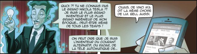Il y a quelques siècle 7 enfants reçoivent des pouvoirs. « Vous voilà investit de pouvoirs immenses. Utilisez-les pour faire le bien avant qu’ils ne vous utilisent pour faire le mal. Allez! Rendez le monde meilleur! ». Le temps s’est depuis écoulé et les pouvoirs se transmettent toujours. Ceux qui ont hérité de ces dons doivent se retrouver. Pour l’instant on ne sait pas pourquoi ni comment cela se fait qu’ils soient tous dans la même ville. L’histoire s’oriente sur trois personnages principaux qui possèdent chacun quelque chose d’unique. Une jeune fille blonde aidé d’une compère organisent leur rapprochement. L’équipe de cinq n’est pas encore au complet. Le tome 2 nous emmènera surement à la rencontre des deux adolescents manquants. L’approche originale réside dans le fait que chaque enfant possède un don particulier. Ainsi pour affronter le Mal, ils devront collaborer ensemble sans rivalité. L’autre élément que j’ai trouvé malin sont les fantômes de personnalités existantes. Les adolescents ne verront pas forcément toutes les références mais elles ont le mérite d’exister comme la référence à Nikola Tesla ou à Diogène quand on parle d’un homme qui vit dans une niche. Le dessin pourrait être plus précis comme dans la série similaire « Monster Allergy ». Mais l’ensemble reste cohérent par rapport au genre de bande dessinée SF pour adolescent. Un album assez bien construit pour nous mettre l’eau à la bouche pour lire la suite. Il est certain que je ne vas pas attendre trop longtemps pour me plonger dans le tome 2.